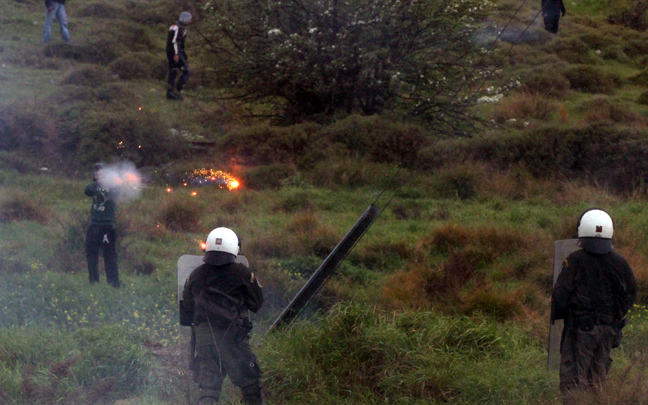 Συναγερμός σήμανε στην Κερατέα λίγο πριν τις τρεις το μεσημέρι, με τις καμπάνες και τα μεγάφωνα να καλούν τον κόσμο στα μπλόκα και ιδιαίτερα σε εκείνο, που στήθηκε χθες επί της λεωφόρου Λαυρίου, στο ύψος της πρώτης εισόδου της πόλης.Μισή ώρα αργότερα στο σημείο εξελίσσονταν έντονα επεισόδια, μεταξύ των κατοίκων και τεσσάρων διμοιριών ΜΑΤ, που συνόδευαν εκσκαφέα για να ανοίξει το οδόφραγμα. Η ισχυρή παρουσία των κατοίκων εμπρός από το οδόφραγμα ανέκοψε την επιχείρηση, η οποία εξελίχθηκε σε συμπλοκή με χρήση χημικών και μολότοφ υπό την παρακολούθηση δύο ελικοπτέρων.