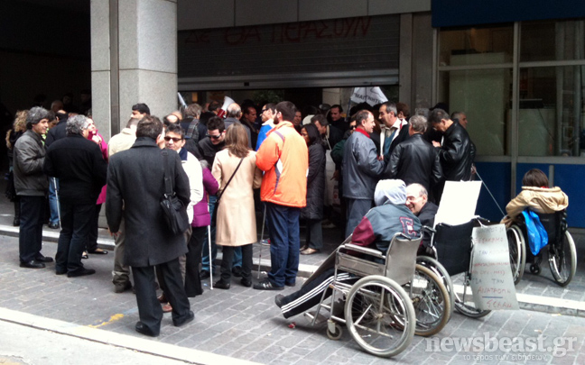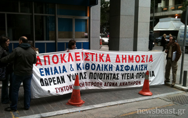 Συγκέντρωση με αίτημα τη δημόσια, ενιαία και καθολική ασφάλιση πραγματοποιεί αυτή την ώρα έξω από το υπουργείο Οικονομικών η Συντονιστική Επιτροπή Αγώνα Αναπήρων. Περίπου 150 άτομα βρίσκονται έξω από το υπουργείο, ενώ έχουν κλείσει την είσοδο του.