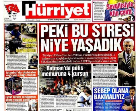 Η Ηürriyet υπενθυμίζει οτι την Κυριακή, είναι το Πάσχα και τονίζει οτι οι Έλληνες, λόγω της αγοράς των αμνοεριφίων απο τους Τούρκους δεν βρίσκουν άφθονο κρέας και ισχυρίζεται οτι οι Έλληνες κάνουν το αστείο " οι τούρκοι θα κάνουν τα πρόβατα μας , κεμπάπ!".