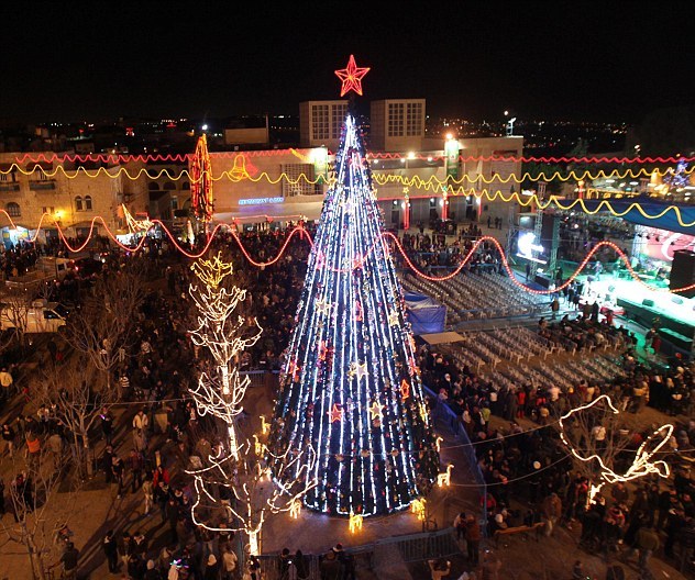 Χθες τελέστηκε η νυχτερινή Λειτουργία, παρουσία και του προέδρου της Παλαιστινιακής Αρχής, Μαχμούντ Αμπάς. Όπως κάθε χρόνο, έτσι και φέτος ο κατάμεστος ναός έγινε σύμβολο και της ιστορίας της περιοχής, καθώς περικυκλώνεται από το τείχος που έχει στήσει το Ισραήλ γύρω από τη Δυτική Όχθη. Ο δήμαρχος της Βηθλεέμ, Βίκτορ Μπαταρσέχ, ανέφερε στο δικό του μήνυμα για την ημέρα την ελπίδα του οι φετινοί εορτασμοί να φέρουν τους Παλαιστίνιους πιο κοντά στο όραμά τους για τη δημιουργία ενός ανεξάρτητου Παλαιστινιακού κράτους.