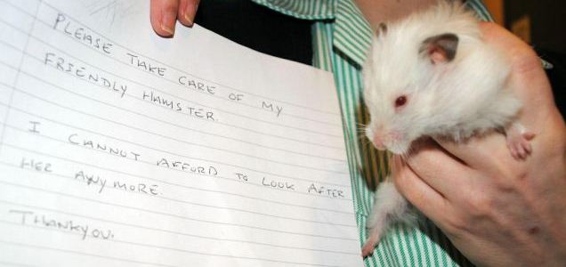 Με τους Λονδρέζους να παρατούν γάτες, σκύλους αλλά και ποντίκια, χαρακτηριστικό παράδειγμα είναι το χάμστερ της φωτογραφίας, όπου το εγκατέλειψαν δίπλα από τα σκουπίδια με ένα σημείωμα που έγραφε.