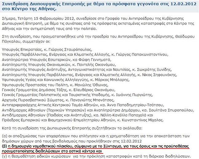 - οι αποζημιώσεις των επιχειρήσεων που επλήγησαν και η χρηματοδότηση για την αποκατάσταση των δημόσιων χώρων από τους βανδαλισμούς που προκλήθηκαν στις 12.02.2012