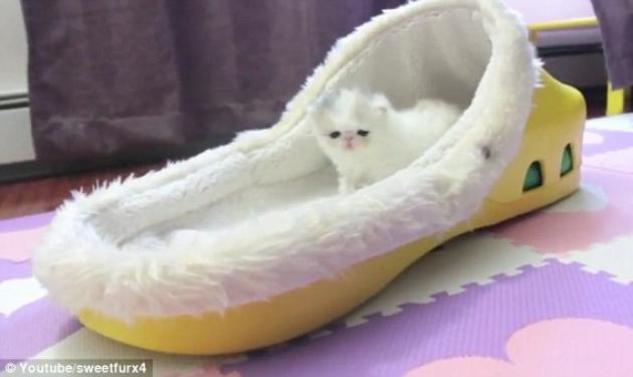 Μια από τις αγαπημένες του συνήθειες είναι να κοιμάται ή να περνάει ώρες μέσα στο παπούτσι του αφεντικού του! Και είναι σοκαριστικό ότι καταλαμβάνει μόλις το 1/3 του χώρου του παπουτσιού!