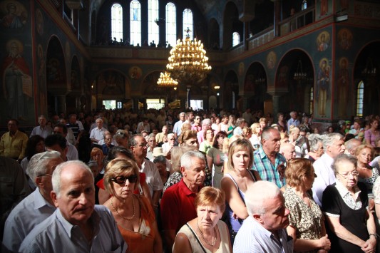 Η εκκλησία ήταν ασφυκτικά γεμάτη από μικρούς και μεγάλους, που παρακολουθούσαν τη λειτουργία...