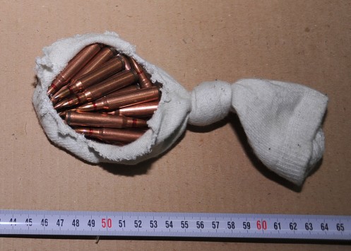 Στο σημείο βρέθηκε σακούλα με 36 φυσίγγια πολεμικού όπλου και μια κουκούλα.