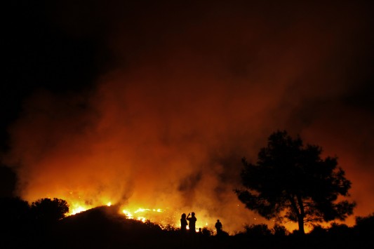 Λόγω των ισχυρών ανέμων οι προσπάθειες κατάσβεσης γίνονται με αρκετή δυσκολία.