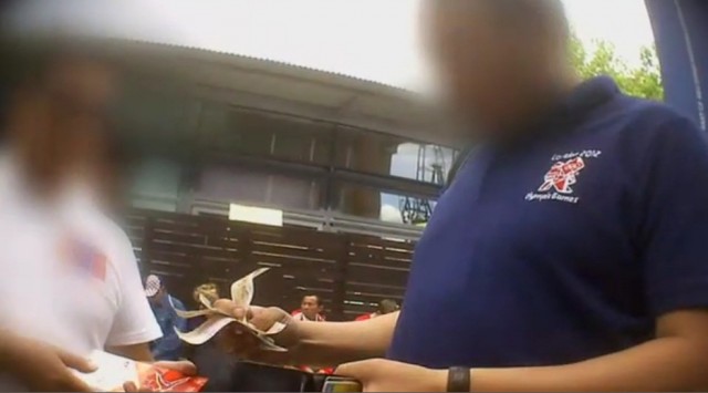 Στο βίντεο που βλέπετε υπάρχει μέλος της Ολυμπιακής επιτροπής του Αζερμπαϊτζάν το οποίο δεν διστάζει να πουλήσει εισιτήρια σε περαστικούς (σε χαμηλότερη τιμή), τα οποία είχε προμηθευτεί δωρεάν από το υπουργείο αθλητισμού της χώρας του.Στην έρευνα που έκανε με κρυφή κάμερα το “Sky News” καταγράφεται ακόμα ανταλλαγή χρημάτων για εισιτήρια έναντι 100 λιρών.