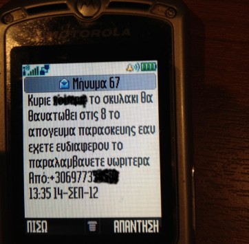Το σκυλί παρέμεινε στο κτηνιατρείο, αλλά από την επόμενη κιόλας ημέρα... ο κτηνίατρος ζητούσε επιτακτικά το ποσό της οφειλής. Μέχρι που την Τετάρτη ο γιατρός αποκάλυψε τον πραγματικό του εαυτό! Προφανώς φοβήθηκε ότι δεν θα πάρει τα χρήματά του κι έτσι έστειλε στο κινητό τηλέφωνο ένα εκβιαστικό γραπτό μήνυμα. «Κύριε Κ... το σκυλάκι θα θανατωθεί στις 8 η ώρα της Παρασκευής. Εάν έχετε ενδιαφέρον, το παραλαμβάνετε νωρίτερα».