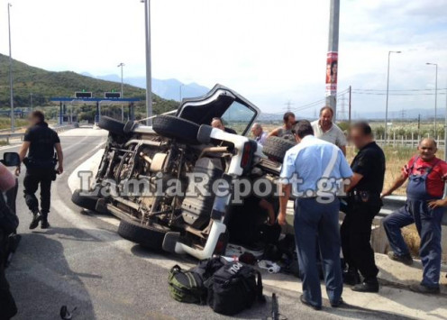 τραυματίες αστυνομικοί μεταφερθηκαν στο νοσοκομείο της Λαμίας.