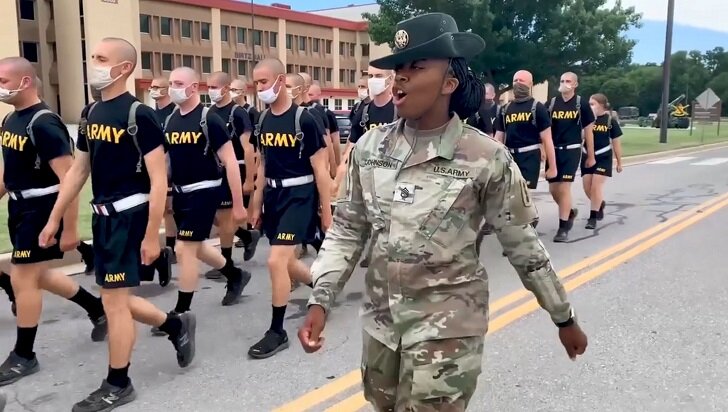 φωτο--Η λοχίας του αμερικανικού στρατού Anisha Johnson διεξάγει εκπαίδευση ασκήσεων με στρατιώτες.