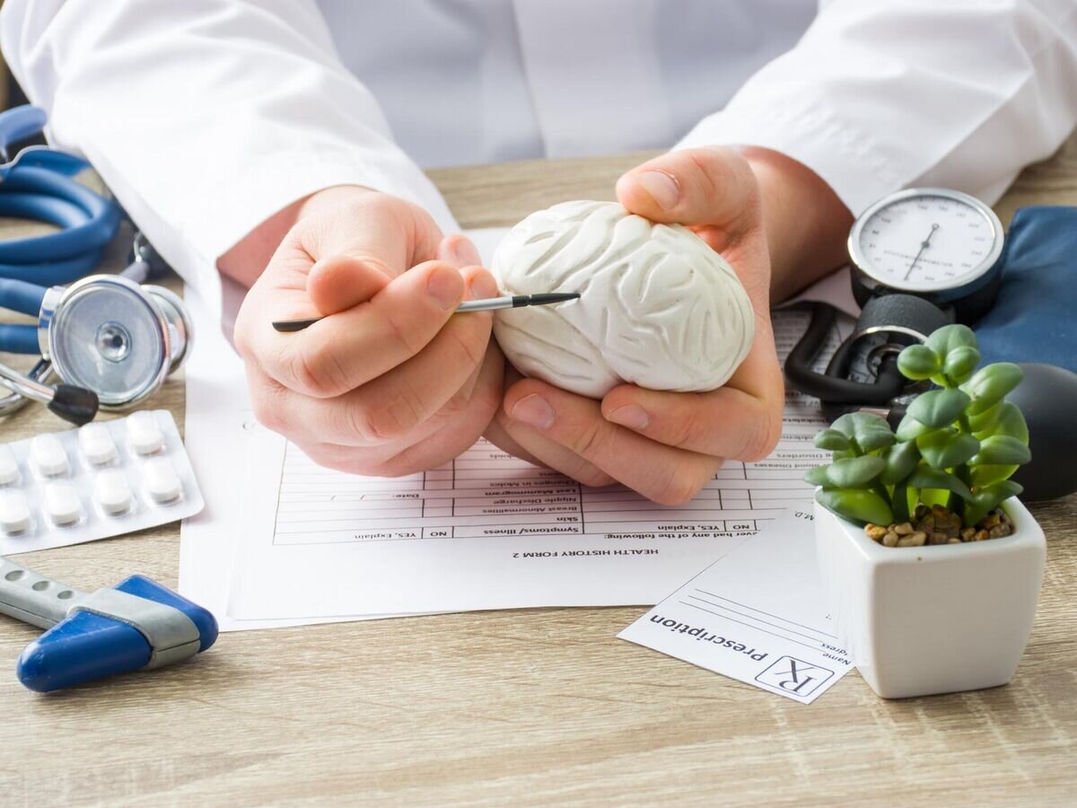 Ένα μοντέλο του εγκεφάλου στα χέρια ενός γιατρού