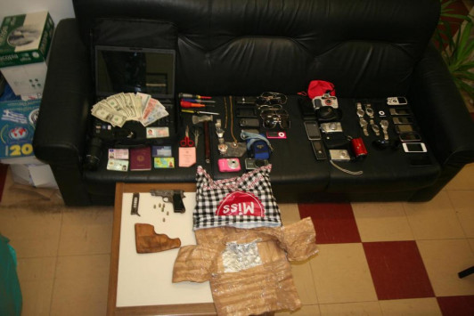 Συνελήφθησαν τρία μέλη της σπείρας και κατασχέθηκε μεγάλος αριθμός κλεμμένων αντικειμένων καθώς και ένα πιστόλι με πέντε σφαίρες.