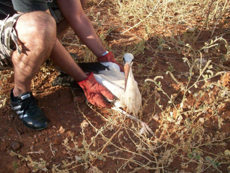 Ο πελαργός είχε πιαστεί από σχοινιά που μετέφερε για να ενισχύσει την φωλιά του και δεν μπορούσε να απαλλαγεί από αυτά. Ανδρες της πυροσβεστικής υπηρεσίας και της ΔΕΗ κινητοποιήθηκαν άμεσα, έστησαν επιχείρηση και με την βοήθεια καλαθοφόρου οχήματος έσωσαν τον πελαργό.