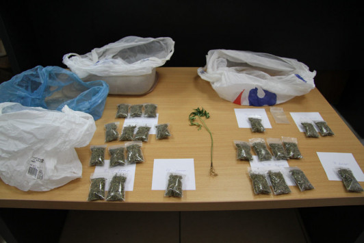 όπου βρήκαν 11 νάιλον συσκευασίες με χασίς συνολικού βάρους 37 γραμμάριων καθώς και 90 ενενήντα πακέτα τσιγάρων τα οποία δεν είχαν ενδεικτική ταινία ειδικού φόρου κατανάλωσης.
