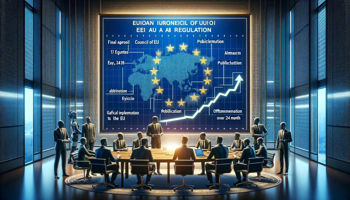 Με την ψήφιση των κανονισμών από το Ευρωπαϊκό Κοινοβούλιο δεν ολοκληρώνεται η νομοθετική διαδικασία. Το έγγραφο πρέπει τώρα να υποβληθεί σε τελική έγκριση από το Συμβούλιο της ΕΕ, μετά την οποία θα δημοσιευθεί επίσημα στην Επίσημη Εφημερίδα της Ευρωπαϊκής Ένωσης. Ο κανονισμός αναμένεται να τεθεί σε ισχύ είκοσι ημέρες μετά τη δημοσίευσή του, αλλά η πλήρης εφαρμογή των διατάξεών του θα ξεκινήσει μετά από 24 μήνες , δίνοντας σε εταιρείες και οργανισμούς επαρκή χρόνο για να προσαρμοστούν στις νέες απαιτήσεις. Έχουν τεθεί συγκεκριμένα χρονοδιαγράμματα για διάφορες πτυχές της ρύθμισης, συμπεριλαμβανομένης της άμεσης εφαρμογής των απαγορεύσεων και της σταδιακής εφαρμογής των απαιτήσεων διαφάνειας και δέσμευσης για συστήματα υψηλού κινδύνου.