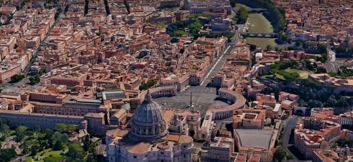 Η πλατεία του Αγίου Πέτρου στη Ρώμη είναι χτισμένη και οριοθετημένη σε μια αρκετά περίπλοκη αρχιτεκτονική μορφή. Οι κύριες γραμμές του του οβάλ σχήματος του τετραγώνου, είναι ακριβώς ευθυγραμμισμένες σύμφωνα με τις βασικές κατευθύνσεις.