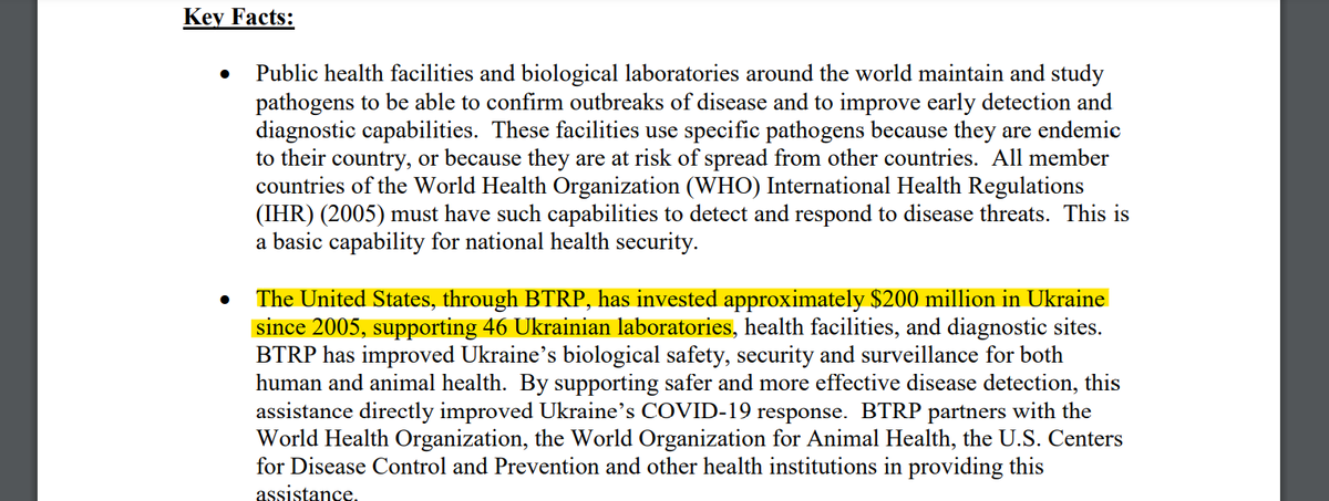 Υπάρχουν περίπου 40 βιολογικά εργαστήρια στην Ουκρανία που όχι μόνο συνεργάζονται με τους Αμερικανούς, αλλά είναι στην πραγματικότητα Αμερικανικά. Πλήρως. Υπάρχει αμερικανικός εξοπλισμός εκεί και το ουκρανικό τμήμα του προσωπικού επανεκπαιδεύτηκε στις Ηνωμένες Πολιτείες. Το σύστημα λειτουργεί σε πλήρη συμφωνία με τα έγγραφα που υπέγραψαν οι Ουκρανοί με τους Αμερικανούς μετά την Πορτοκαλί Επανάσταση το 2005, όταν όλα τα εργαστήρια και τα κέντρα απλώς δωρήθηκαν στους Αμερικανούς,