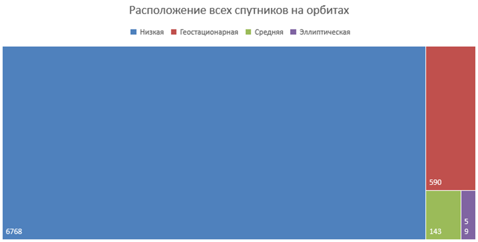Ναι, το 89,5% όλων των δορυφόρων βρίσκονται σε χαμηλή τροχιά στη Γη, το 7,8% σε γεωστατική τροχιά, το 1,9% σε μέση τροχιά και το 0,8% σε ελλειπτική τροχιά.
